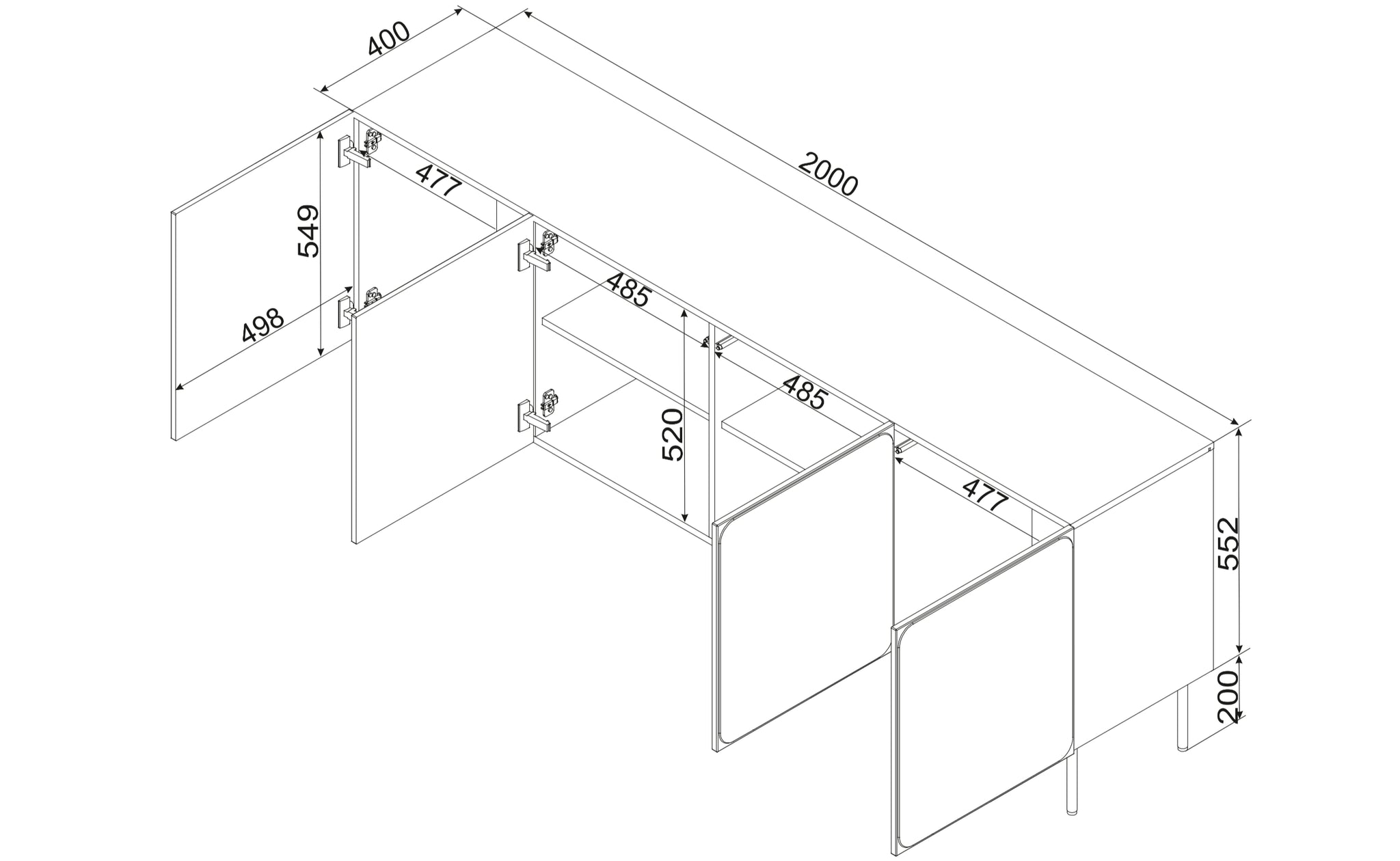 RAFAEL 200 skænk med 4 låger