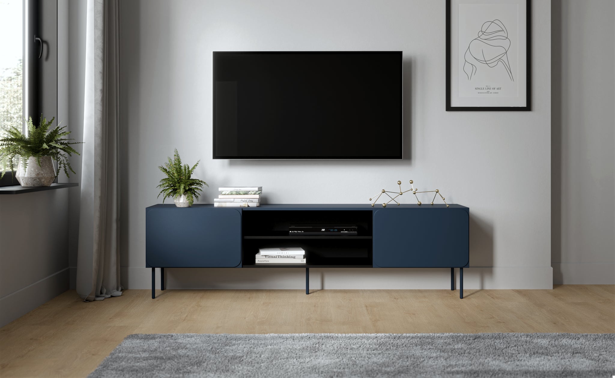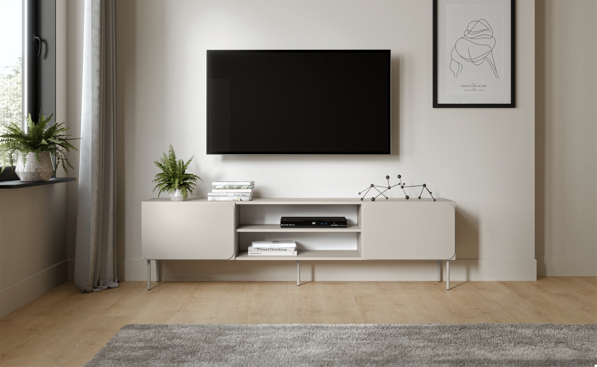 Rafael TV-bord i 200 cm bredde med 2 låger og en hylde i midten.